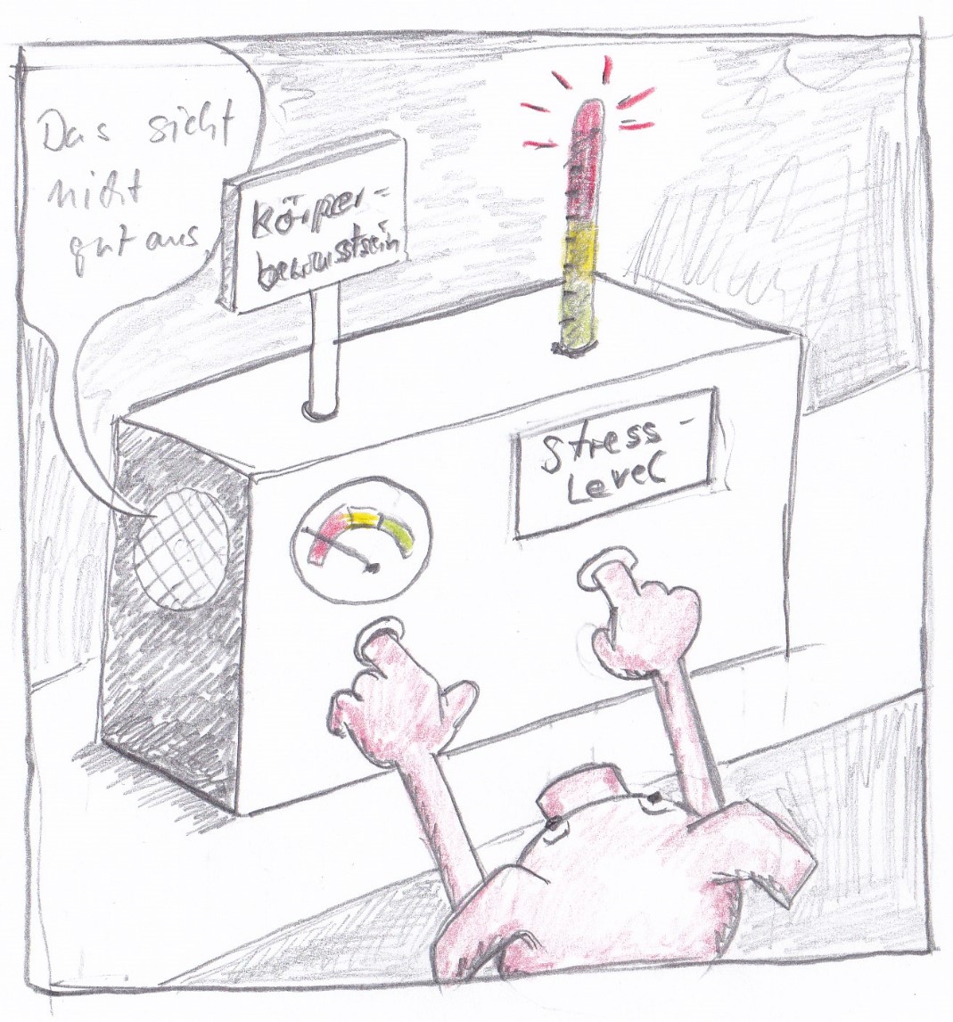 Kann mal jemand ein Körperbewusstsein-Messgerät entwickeln? Finger reinstecken und dann ablesen, wie es um das Körperbewusstsein und den Stresslevel steht. Das sollte doch jeder Arzt in seiner Praxis haben.